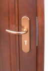 Drzwi zewnętrzne są ważnym elementem każdego domu. Ponadto drzwi zewnętrzne muszą chronić wnętrze domu przed zmiennymi warunkami panującymi na zewnątrz. Podstawą konstrukcji drzwi drewnianych są klejone z trzech warstw ramiaki grubości 68 mm. Dodatkowe wklejenie płaskownika zapobiega odkształcaniu się skrzydła i zwiększa jego sztywność. Podwójny kaseton z ociepleniem gwarantuje niską przenikalność cieplną i akustyczną. W standardzie montowane są zamki wielopunktowe firmy WINKHAUS (hakowy, klasy bezpieczeństwa C) oraz zawiasy wpuszczane firmy SIMONSWERK. Farby lasurujące firmy SIGMA nie tylko podkreślają naturalny charakter drewna, lecz przede wszystkim w doskonały sposób zabezpieczają drewno przed wpływem warunków atmosferycznych. W szerokiej gamie oferowanych przez nasza firmę szyb każdy znajdzie coś dla siebie (ornamenty, szyby utrudniające włamanie, witraże itp).